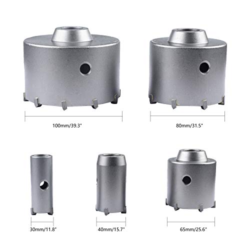 PACKAGE INCLUDED- 5 PCS Hole Opener:1-2/11”(30mm), 1-3/5”(40mm), 2-9/16 “(65mm), 3-5/32”(80mm), 3-15/16”(100mm); 2PCS SDS connecting rod: SDS 11-13/16”(300mm), SDS max 11-13/16”(300mm); 2 PCS center drill bit 4-1/3”(110mm).