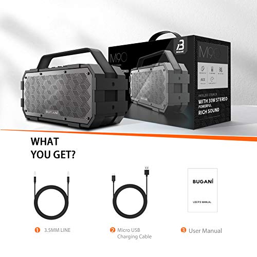 What You Get-M90 1Bluetooth speaker, 1Micro USB charging cable, 1 AUX cable, 1 Quick user guide, and 24-7 customer service, if you encounter problems, you’ll be able to at all times contact us, Our lovely customer service staff will reply to you within 12 hours and will let you in spite of everything solve the problem, so that you get quality service.