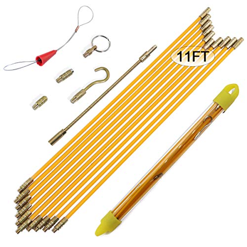 Boeray 11′ Fiberglass Running Electrical Wire Cable Pulling Fish Tape kit with 5 different attachments in a Carrying Case
