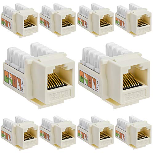 Cmple – 10 Pack Cat5e Punch Down Keystone Jack, Cat5 Punch-Down Network RJ45 Female Keystone Adapter for Modems…