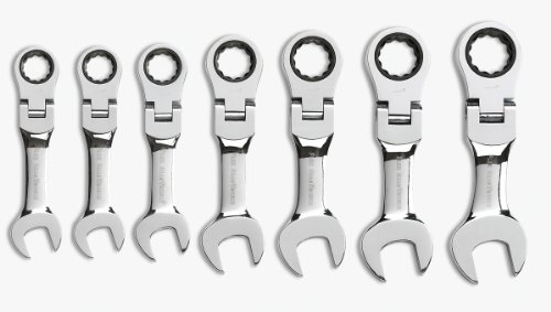 GEARWRENCH 7 Piece 12 Pt Stubby Flex Head Ratcheting Combination Wrench Set, SAE – 9570.