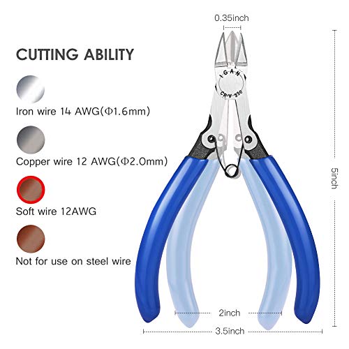 1.Ultra Sharp Wire Cutter: 13mm long upgraded jaw can achieve flush-cutting applications on up to 12 gauge (2.0mm) copper and soft wire.