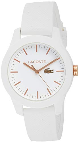 Lacoste Women’s Ladies 12.12 Stainless Steel Quartz Watch with Silicone Strap, White, 17 (Model: 2000960)