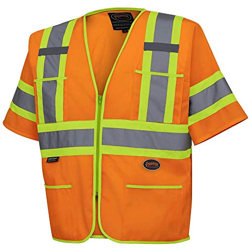 Pioneer High Visibility Tricot Sleeved Safety Vest, Reflective Tape, 4 Pockets, Orange, Unisex, 2XL, V1023550U-2XL