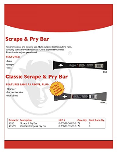 The classic Red Devil scrape & pry bar is back due to customer demand! this is the version that Red Devil sold for years up until the mid 2000’s. This version is stronger than our regular 4050 pry bar and will handle the toughest jobs without bending. Use as a pry bar and for scraping paint and pulling nails. It has a chisel edge on both ends. Made of the finest hardened tempered steel.