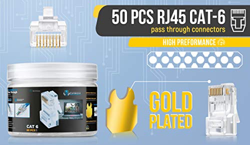 This Pass-through UTP Cat6 connectors make it easy by allowing the wires to pass right through the plug so You’ll be able to verify they are in the correct order before crimping the plug.