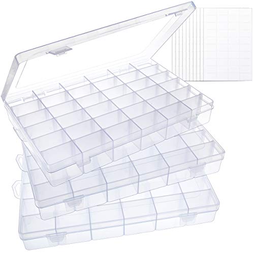 SGHUO 3 Pack Plastic Organizer Box 36 Grids, Craft Organizer Storage with Adjustable Dividers, Bead Organizer, Fishing…