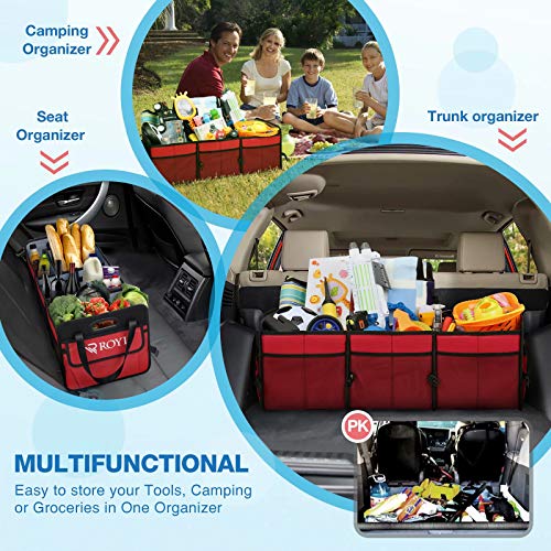 Upgraded Car Trunk Organizer Collapsible Portable Cargo Storage with Tools Grips 3 Large Compartments and Upgraded…