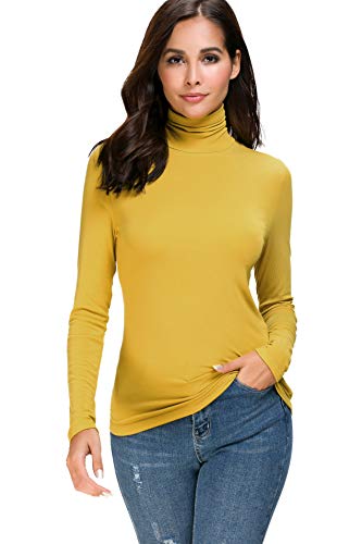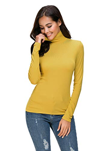 Women Long Sleeve Mock Turtleneck T Shirt Solid Stretchy Slim Fit Layer Tee Tops